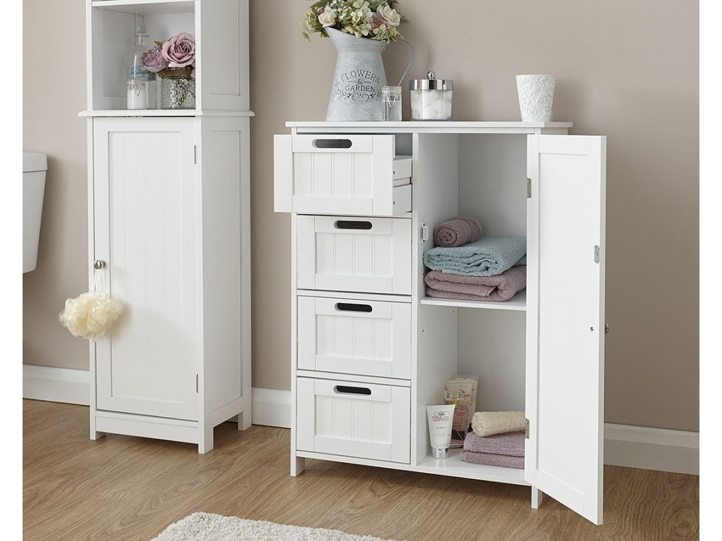 Colonial Wood 4 Drawer / 1 Door Bathroom Unit in White