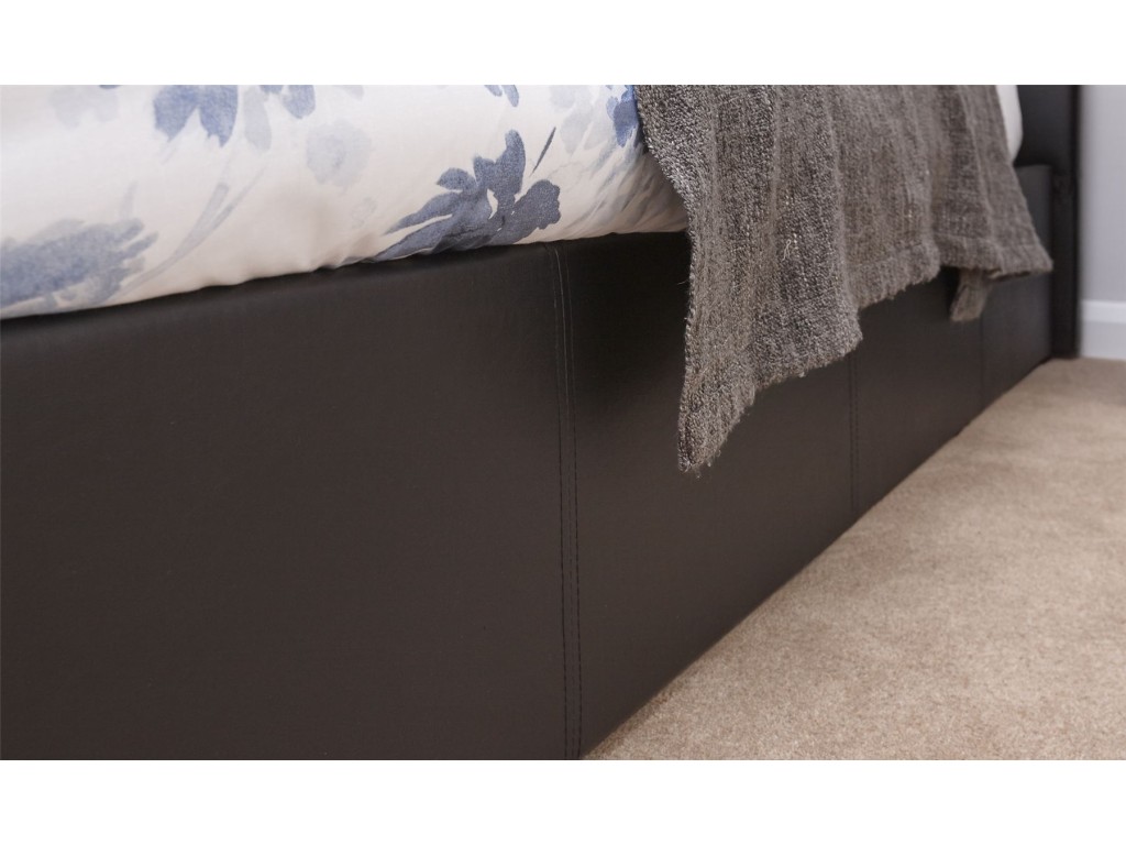 This stunning end lift ottoman bed offers an attractive combination of contemporary style and ample storage space. This beautifully crafted frame is finished in high quality faux leather and complemented by a simple yet stylish stitched headboard.