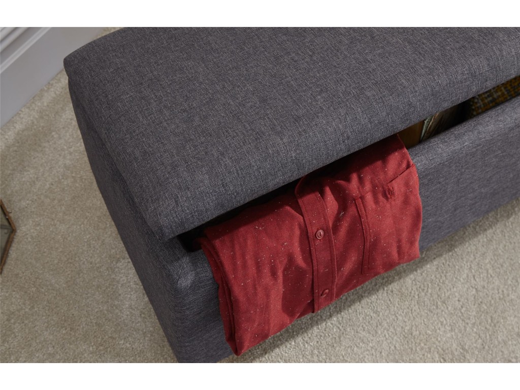 Dark Charcoal Grey Secreto Hopsack Fabric Lift Up Ottoman Storage Bench