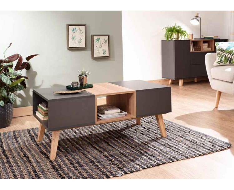 An eye-catching addition to your living space, this smart coffee table is a contemporary classic. The sturdy frame features a combination of grey and oak-effect finishes, with angled, solid wood Scandi-style legs that are a nod to Modena's mid-century influence. The intriguingly arranged open-ended compartments that form the table-top offer plenty of options for storing and displaying books, magazines and decorative items. Built to complement the wider Modena range and the perfect choice for design-conscious buyers.