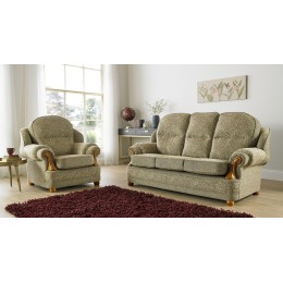 Ritz Tiffany 3+2 Seat Deep Fill Fabric Living Room Sofa Set with classical Mahogany fascia scroll style arms and caster wheel feet. This range is proudly manufactured in the UK.